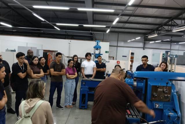 Durante a aula, os acadêmicos tiveram contato direto com equipamentos como torno, fresa e plaina, utilizados amplamente na transformação de matérias-primas em peças acabadas. A proposta foi apresentar, de forma aplicada, os conceitos teóricos trabalhados em sala, demonstrando como a usinagem se insere no contexto dos processos de fabricação.