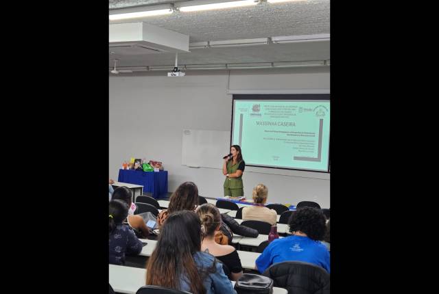 Durante a Mostra, professoras do Centro Municipal de Educação Infantil "Diego José Ferreira Lima" apresentaram práticas pedagógicas pela perspectiva de um processo de alfabetização humanizadora, que engloba tanto a leitura quanto a escrita, com a mediação da professora do curso de Pedagogia da Uniube, Cíntia Resende Corrêa.