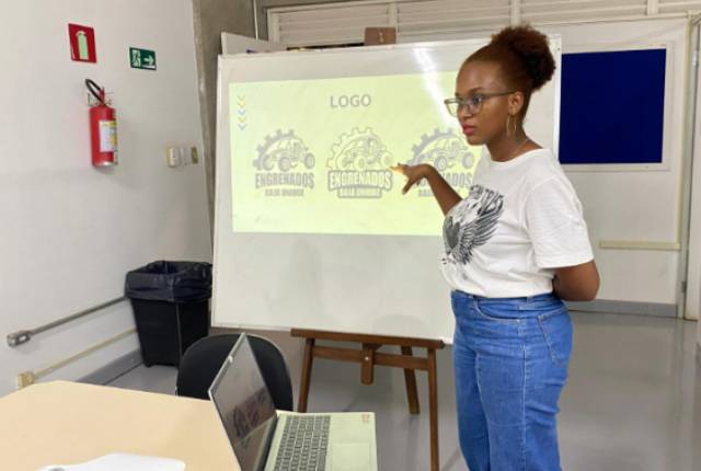 Na ocasião, foram apresentados pela acadêmica do 3º período do curso de Sistemas de Informação, Lara Beatriz, que é supervisora de marketing do Engrenados Uniube, os elementos que irão compor a identidade visual da equipe, como logomarca, camiseta e bandeira.