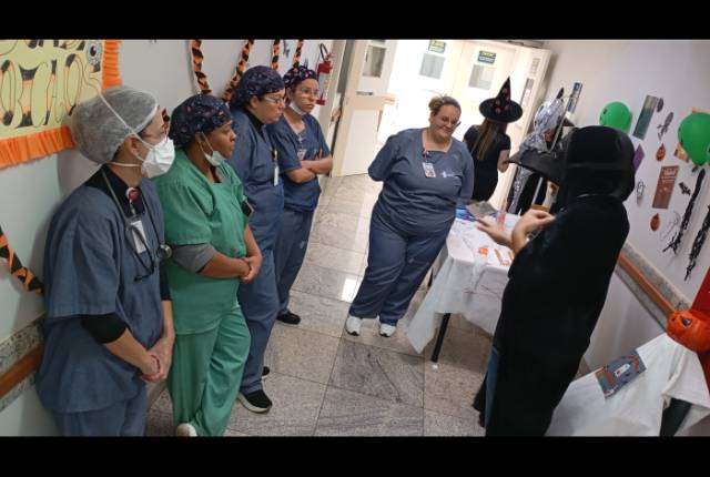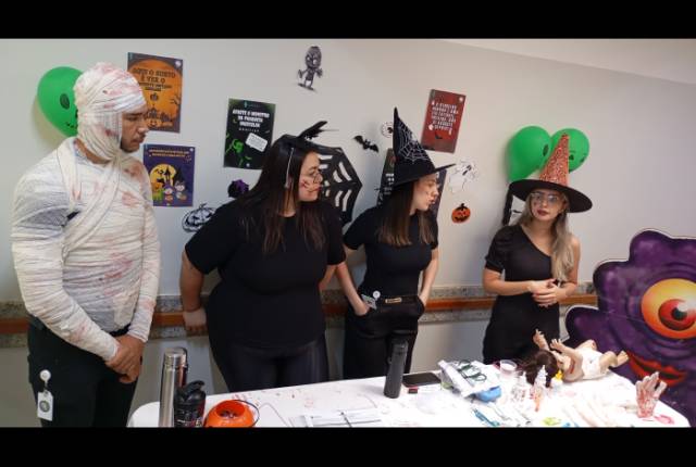 "A ação buscou reforçar a importância das boas práticas de prevenção, o cumprimento dos protocolos institucionais, a segurança do paciente e o trabalho em equipe, tudo isso em clima leve, educativo e temático usando o Halloween", destacou Ana Luiza Alves Freitas, coordenadora da UTI.