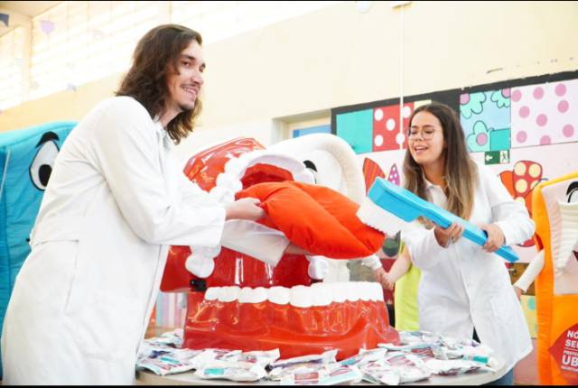 A Prefeitura Municipal de Uberaba em parceria com o curso de Odontologia da Uniube realizou uma ação de saúde bucal na escola para surdos Dulce de Oliveira. A ação integra o Programa Saúde na Escola (PSE), desenvolvido com as Secretarias de Saúde e Educação de Uberaba, e contou com a participação dos acadêmicos e dentistas preceptores da prefeitura que contribuiram para a promoção de atividades educativas e distribuição de kits com escova e creme dental.