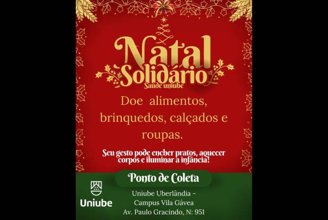 Os alunos dos cursos da área da Saúde da Uniube Uberlândia estão promovendo o projeto Saúde que transforma: Natal Solidário, uma ação social que une cuidado, empatia e responsabilidade coletiva. A iniciativa, realizada sob orientação da professora Maria Henriqueta e com apoio da coordenadora da Saúde, Maria Tereza, busca tornar o Natal de famílias carentes mais acolhedor e solidário.
